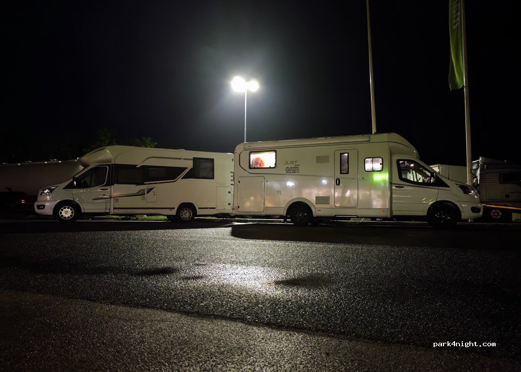 Classico parcheggio in area di servizio, carico acqua e scarico nere, per le grigie qualche km dopo c'è un'area di sosta.
