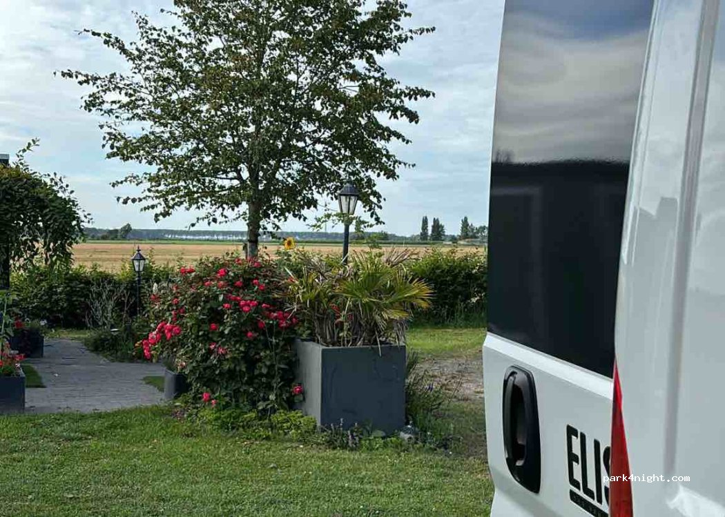 Superbe endroit avec des gens forts accueillants et sympathiques. Passage chaque soir d’un food-truck différent (frites, pizza, glaces,...). Sanitaires propres à plusieurs endroits dans le camping, petite place de jeux et départ de jolie balades à vélo, le village de Sluis est magnifique. Idéal pour visiter La région (Brugges,..)