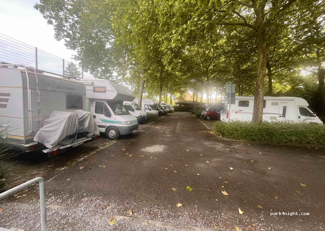 Super Platz, auch für große Wohnmobile geeignet. Wir haben mit 9meter Platz gefunden. Besonders toll mit Kindern, nur wenige 100 Meter entfernt ist ein Park mit tollem Spielplatz und ein Zoo. Kostet nichts und ist auf zwei Tage/Nächte begrenzt. Direkt daneben ist ein Fußballstadion, gerade für unsere Kleinen ein Highlight aus dem Womo den Spieler*innen zuschauen zu können!