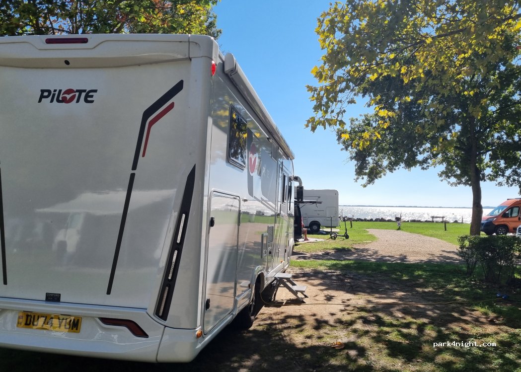 Großer Platz; Ende September zum Glück nur noch halb ausgelastet. Stellplätze direkt am Wasser möglich, auch verschiedene Kategorien und Größen. Wenig individuell, kaum Schatten und Sichtschutz, alles offen und gewöhnlich. Das Personal ist super; wir konnten uns den Stellplatz auswählen. Sanitär fanden wir eher 3-4; wir hatten noch nie einen Platz, wo von 23-6 Uhr die Klos geschlossen hatten…