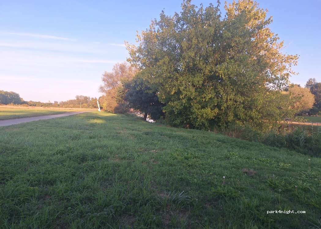Impossible d'aller jusqu'au bout. Une chaîne barre l'accès au chemin menant à l'allée boisée. Nous nous sommes arrêtés un peu avant, donc bois sur un côté, et écluse de l'autre, bien tranquille pour dormir une nuit.