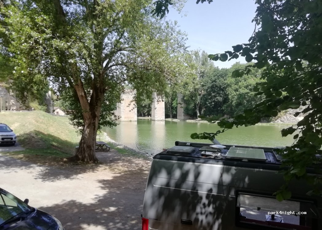 très bien. nous sommes en camion en totale autonomie alors ça convient. c'est calme, superbe vue, des canards, tables de pique-nique, poubelles. le parking est un peu de travers alors je pense que ça peut être gênant pour un camping car. pour eux il y a l'autre endroit à côté qui est plat mais sans cette magnifique vue.