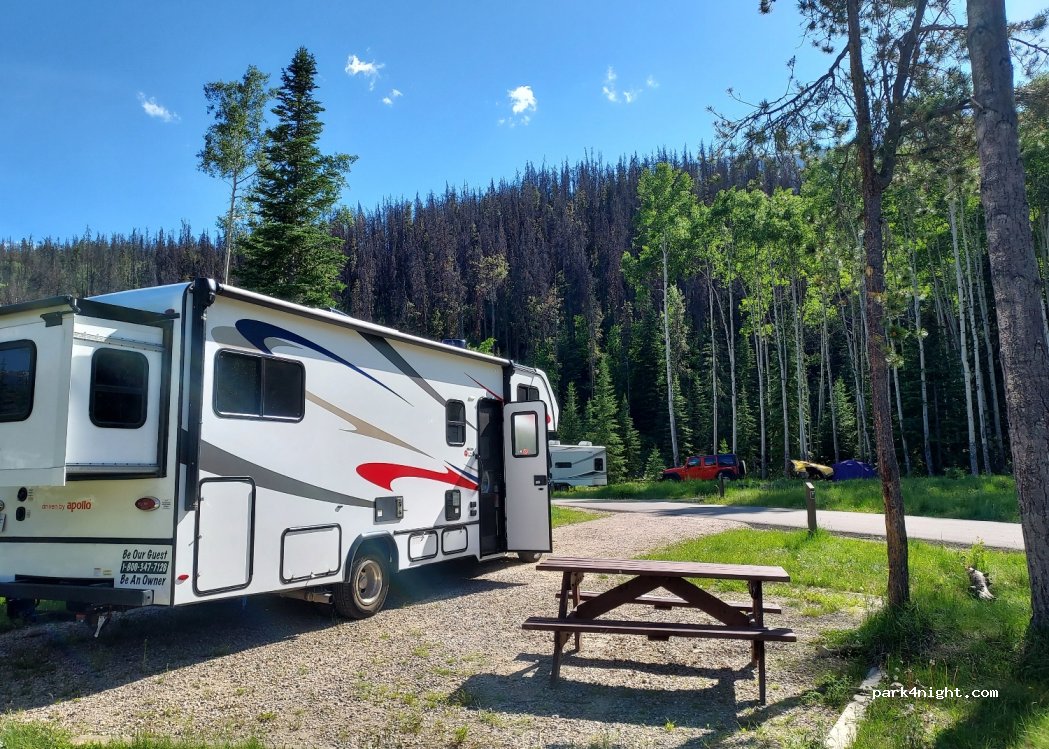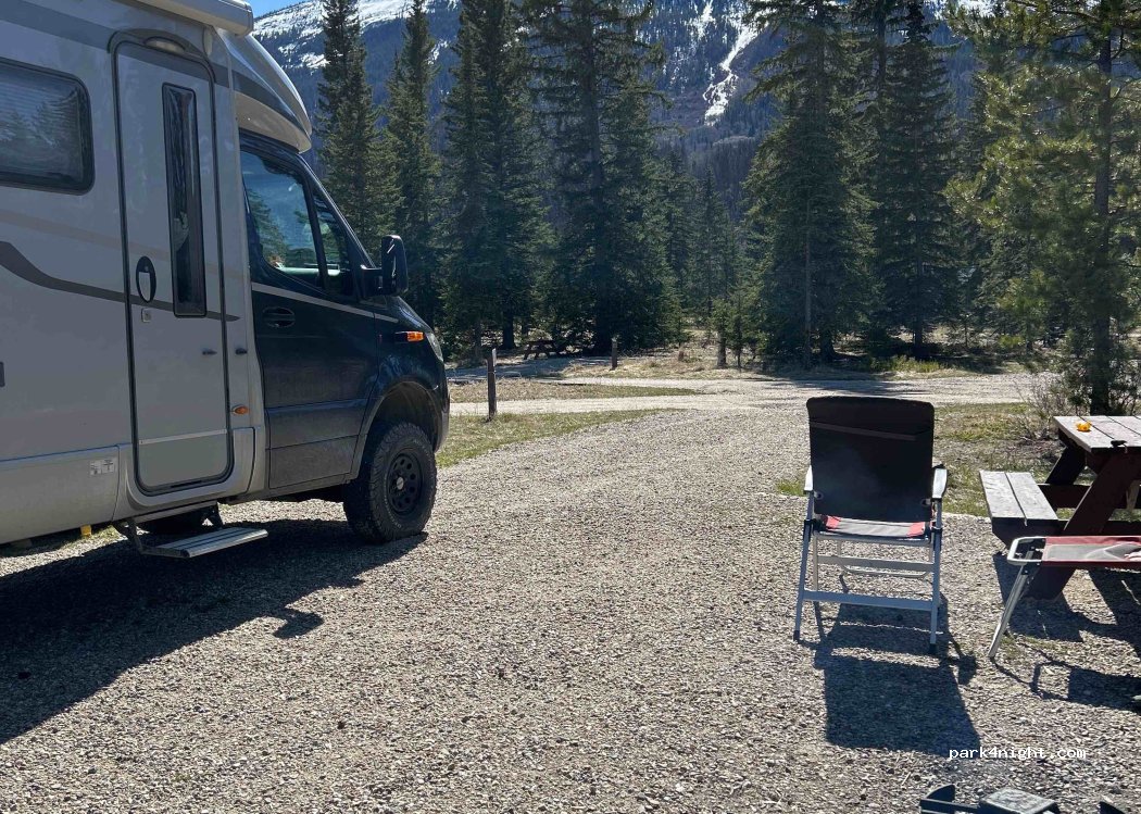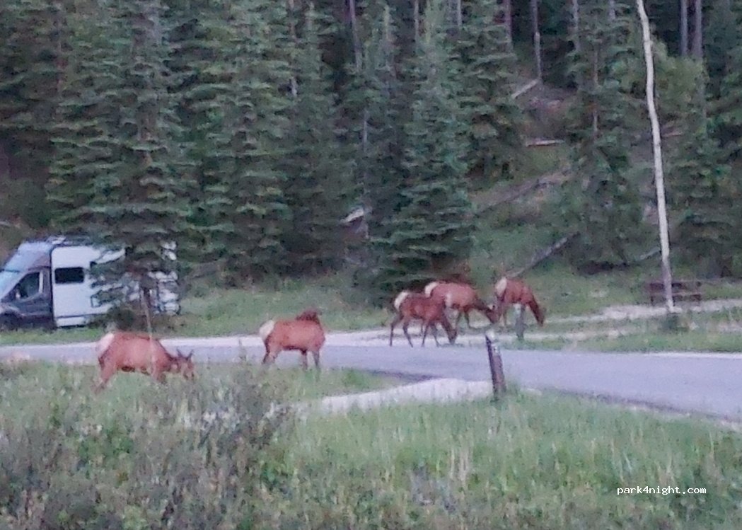 Great site even with fire damage. Even though over 700 pitches and lack of tree cover it doesn’t seem cramped or crowded. No problems getting showers or using washrooms. Shuttle bus to town from main reception chargeable $2.50 per trip. Elk regularly visit in the evening and morning so plenty of photo opportunities. Coming back in the next couple of weeks as so good.