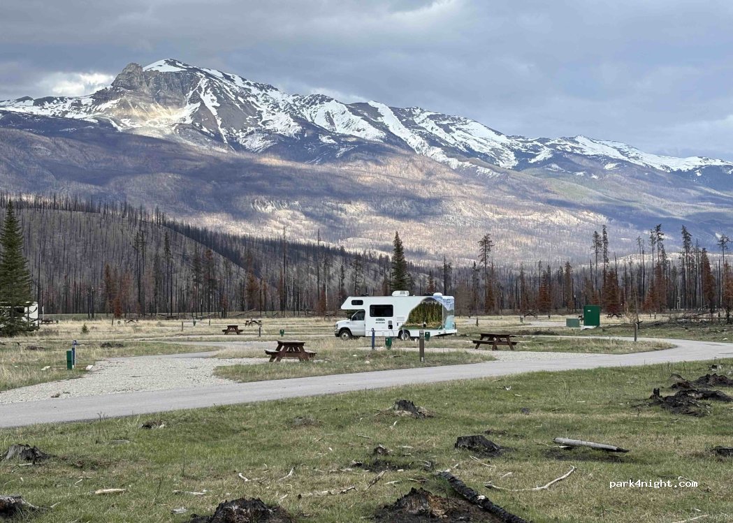 Un super camping avec plein d'emplacements. Même si le secteur a connu un énorme incendie l'année dernière, le site est très chouette. Continuez de venir à Jasper !!! En plus nous avons vu des Wapitis au couché du soleil se nourrir à côté de nous. Prix emplacement RV sans électricité 30$ en septembre 2025.