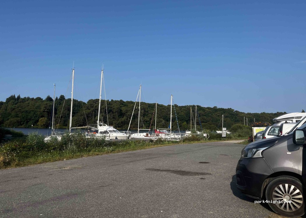 Avons dormi 1 nuit hors saison, magnifique endroit. Nous nous sommes stationnés devant les bateaux amarrés, nous n'avons pas été sur le grand emplacement en herbe, un camping-car y était stationné, et nous voulions éviter d'emprunter le petit chemin de terre. Pas de bruit, réveil avec la brume, tranquille en toute autonomie.