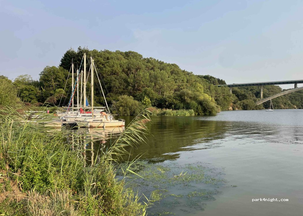 Super endroit en pleine nature avec vue sur les voiliers et sur les deux ponts. Spot calme mise à part le bruit de la route sur le pont mais ça reste supportable et n'empêche pas de dormir. Nous avons passé une bonne nuit.