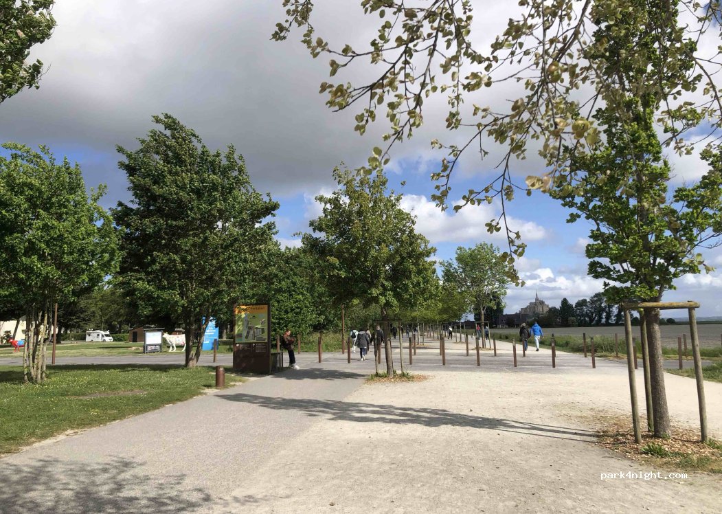 Camping Mont Saint Michel (Hotel Vert) che evita il parcheggio Véolia, a soli 150 m dalle navette per Mont Saint Michel o 25 min a piedi, per arrivarci: prendere la direzione Mont Saint Michel, superare Beauvoir, uscire dal parcheggio Véolia sulla destra prendere direzione "Caserma". Le piazzole sono ombreggiate e ampie. L'accesso a quest'area è a pagamento oltre al costo dell'area camper.