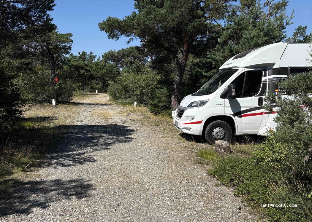 Shaded campsite, by the lake in the pine forest - accepting the passage of motorhomes for services