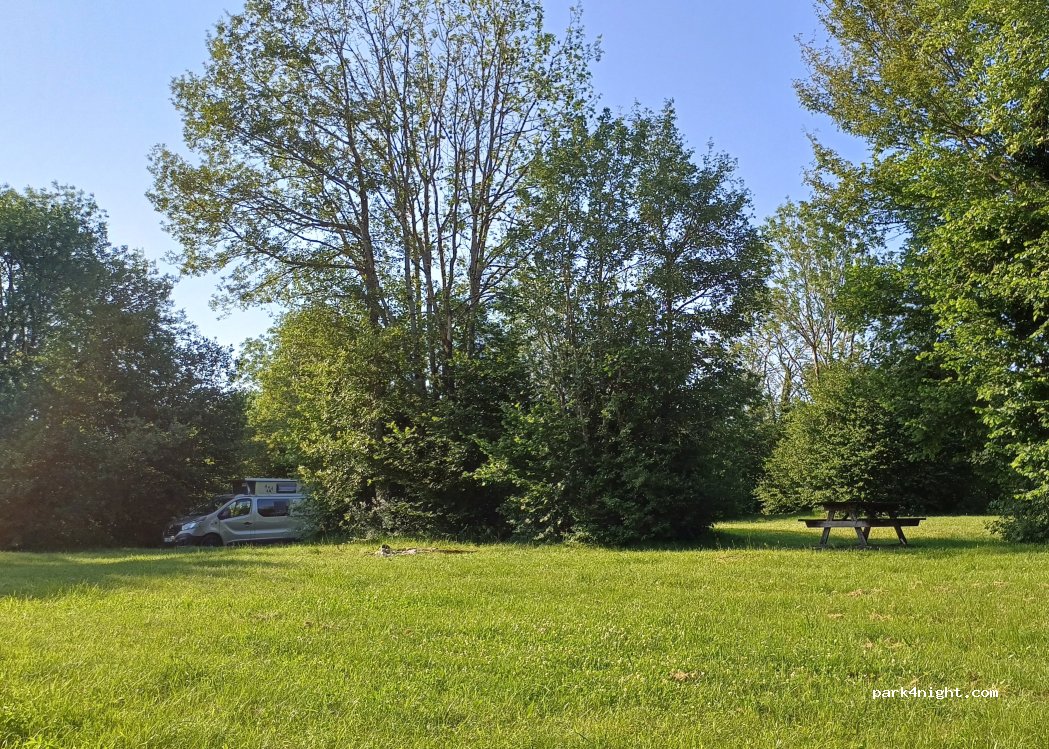 Nous avons passé 2 nuits sur l'aire de pique nique, très calme, dont une nuit seuls. Pas de soucis pour rentrer avec un camping-car de 6m non surbaissé. Poubelles sur place. Pour amoureux de la nature.