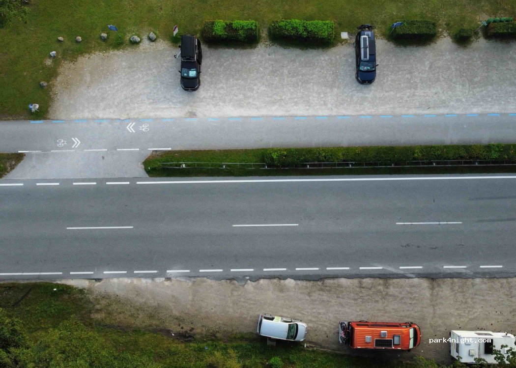 Místo přímo vedle silnice. Naproti přes silnici placené stání. K dispozici čisté WC zdarma. Noc rušnější vzhledem k frekventované silnici ale spát se tam na pohodu dalo.