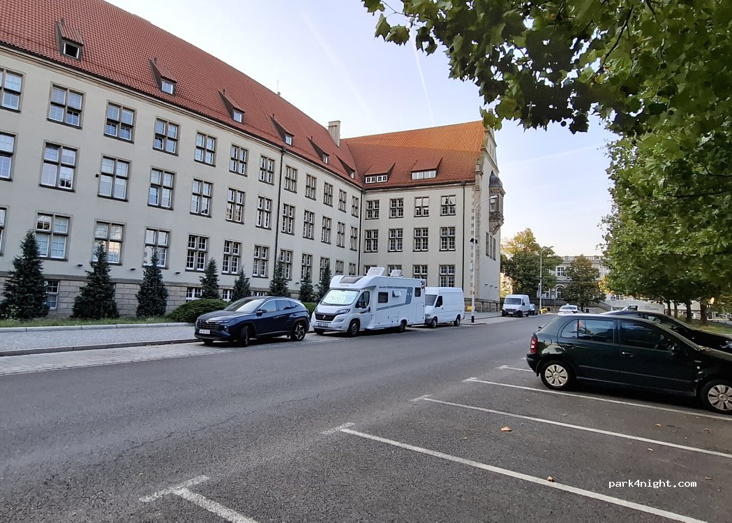 Es ist ein kostenloser Parkplatz in der Stadt, was will man mehr. Die Nacht war ruhig, nah an der Oder, ca. 3km zu Fuß in die Altstadt. Konnten wunderbar parken mit unserem Womo (Länge 6,31m). Wenn Uni ist, ist der Parkplatz aber voll!