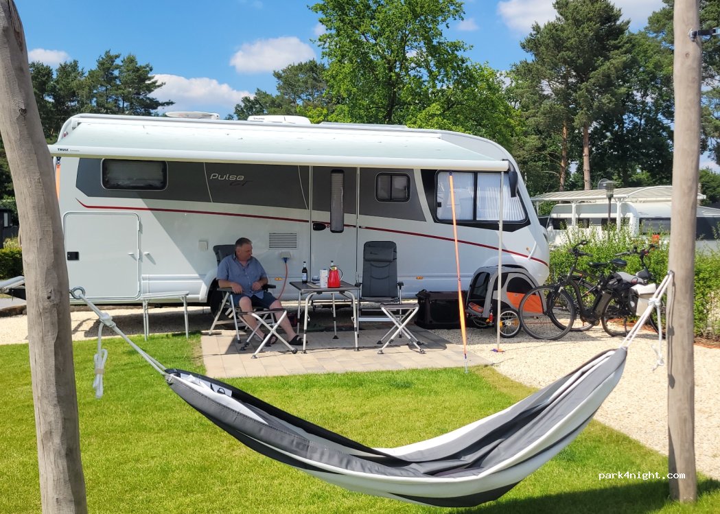 Motorhome parking area directly opposite the campsite. 24-hour check-in, pay the next morning at reception. Sanitary facilities and Ver-u. Disposal. All campsite facilities are available for use. Charges include all guests and electricity. A place with very good facilities that certainly deserves many stars. The campsite strives to live up to a high standard.