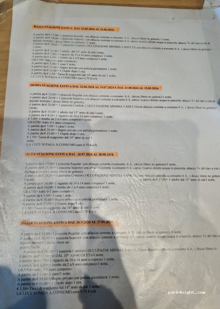 Campeggio troppo caro( 54€. 2persone+ van), piazzole piccole, problemi ricezione TV. Gestore poco accogliente non ci tornerò più!!!