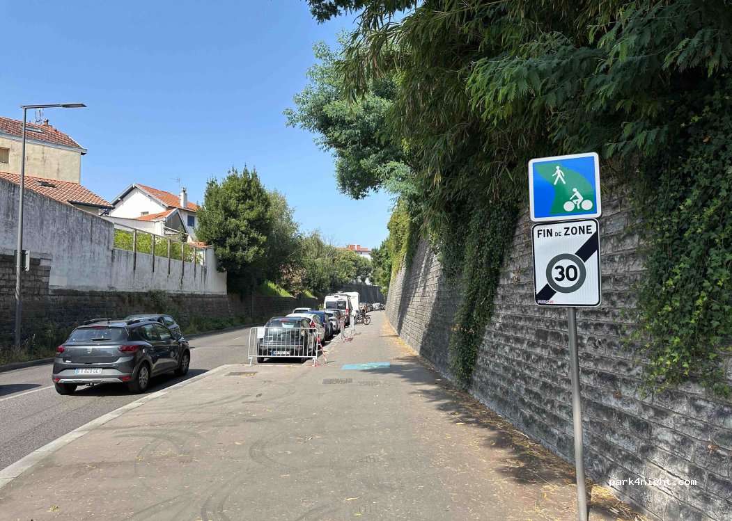 Parking gratuit dans la rue. Nous ne restons que pendant la journée. Pour dormir, je ne sais pas
