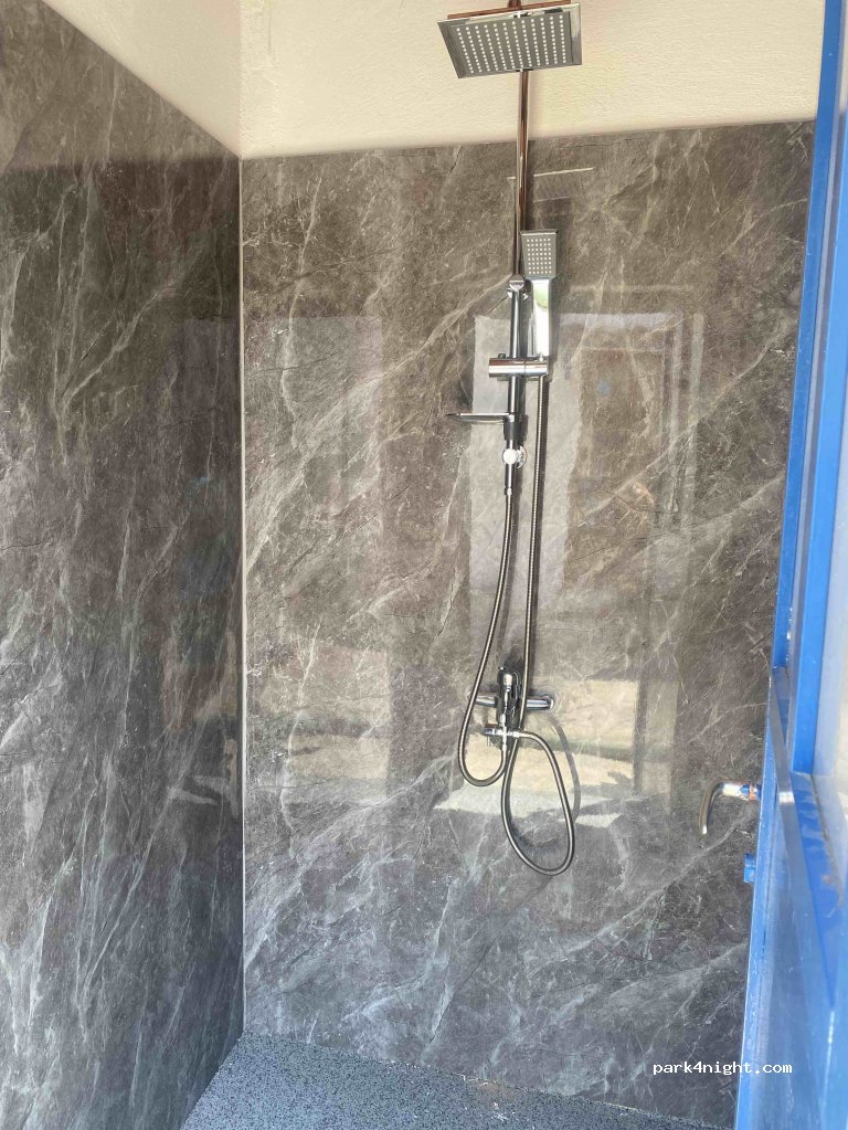 Good location and showers but not wifi, no toilet paper or toilet seats and you can't empty the tank water, 24 euros included electricity per day, many living campers there, people nice