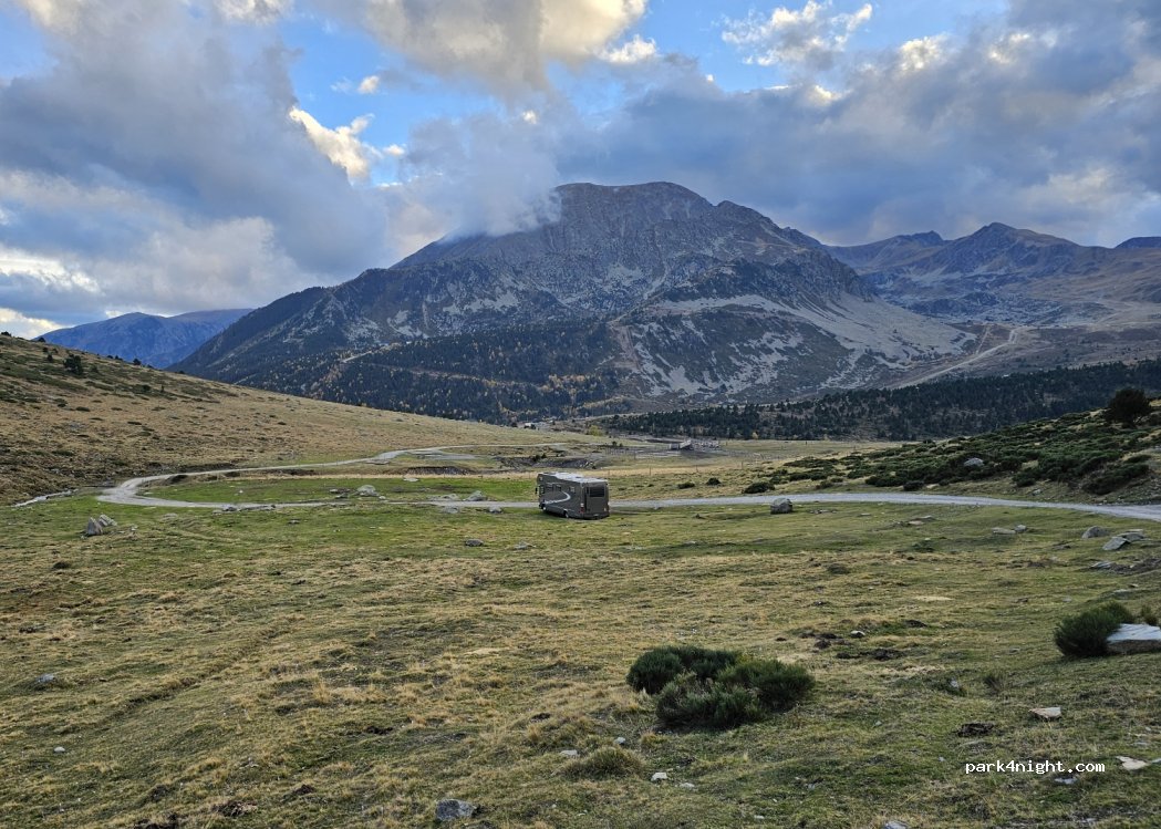 Nous étions garés à gauche de la piste, belle vue, endroit calme en plein été, des chevaux très curieux au réveil. Idéal départs de randonnées par la Coume d'En Garcia.