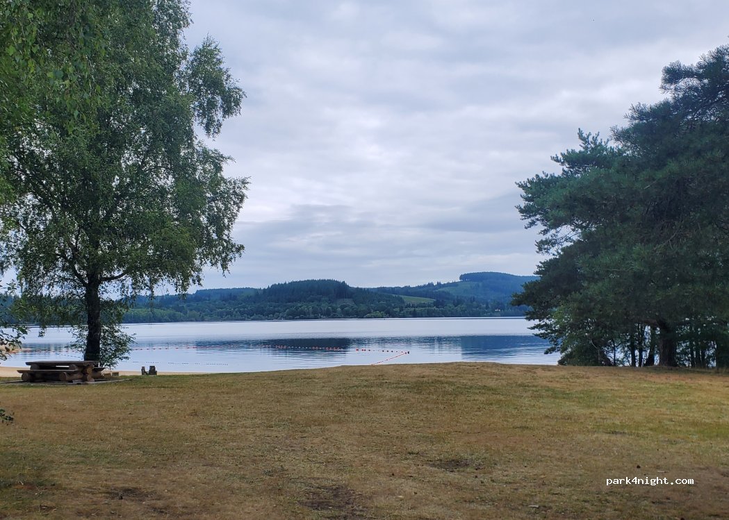 Broussas beach, lake view, supervised swimming, pedal boats, canoe. Free shuttle to visit the island of Vassivière and other points of the lake. Snack, bar, WC and free showers, no emptying, bread delivery around 9am. Large brand new children's play area.
