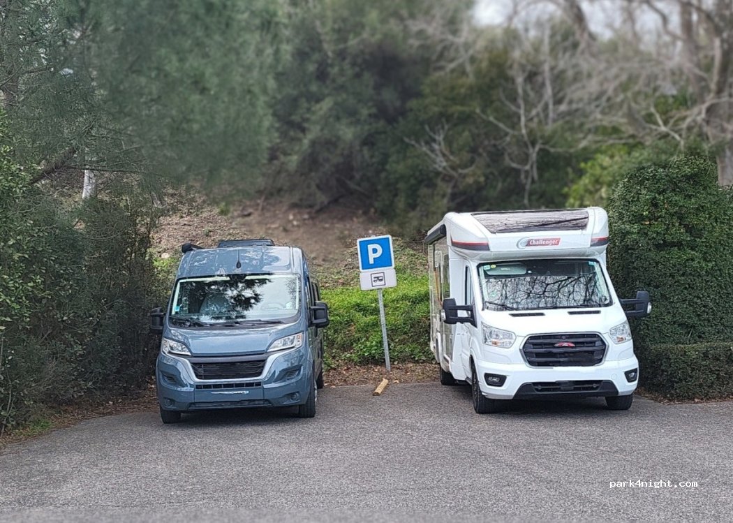 Parking complet la journée,vide la nuit avec seulement des vans (limite 2,20). 2 places de camping cars à l'entrée du parking. Endroit calme et tranquille (surveillance la journée). Merci de laisser ce spot propre.