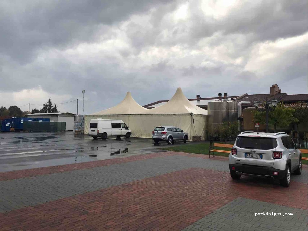 Parking à la manufacture de balsamique Leonardi. S'il vous plaît demander à la boutique avant de dormir ici. Il y a un grand parking asphalté. Ils proposent des visites de la production avec dégustation et une boutique avec leurs produits. La tournée a été très instructive et tous les gens étaient vraiment adorables. La nuit était très calme, nous avons dormi parfaitement. Aucun service.