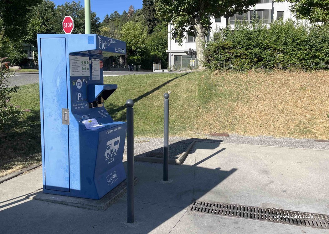 Borne Flot Bleu. Vidange complète et 2 € le jeton pour 4 heures d'électricité, bien situé près de la gare.