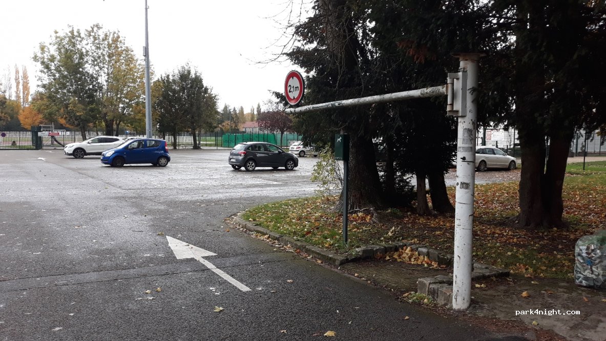Parking aux abords de lieux sportifs. Très tranquille la nuit. Gratuit.