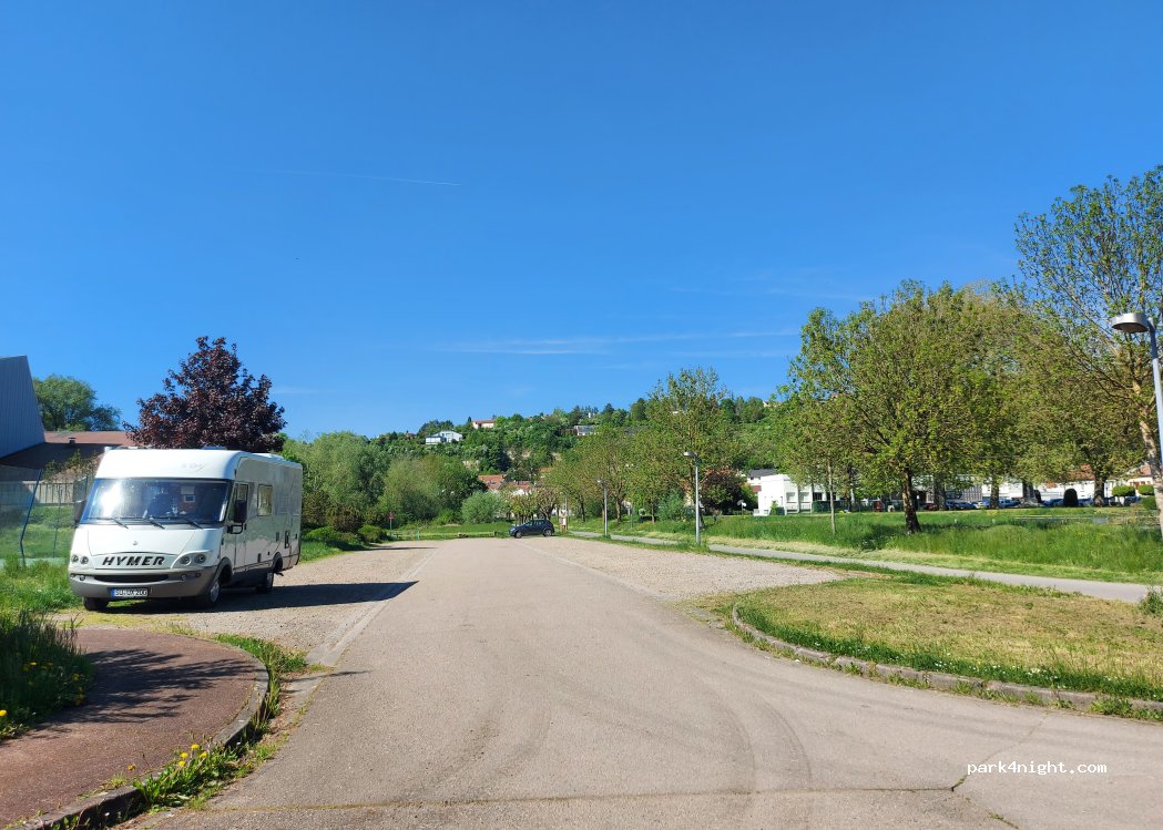 Nous avons passé une bonne nuit, un peu de bruit le soir avec les personnes venant au gymnase mais rien de trop gênant. Ballade à proximité (voie verte). A éviter avec des gros gabarits, il y a un petit pont à passer assez étroit.