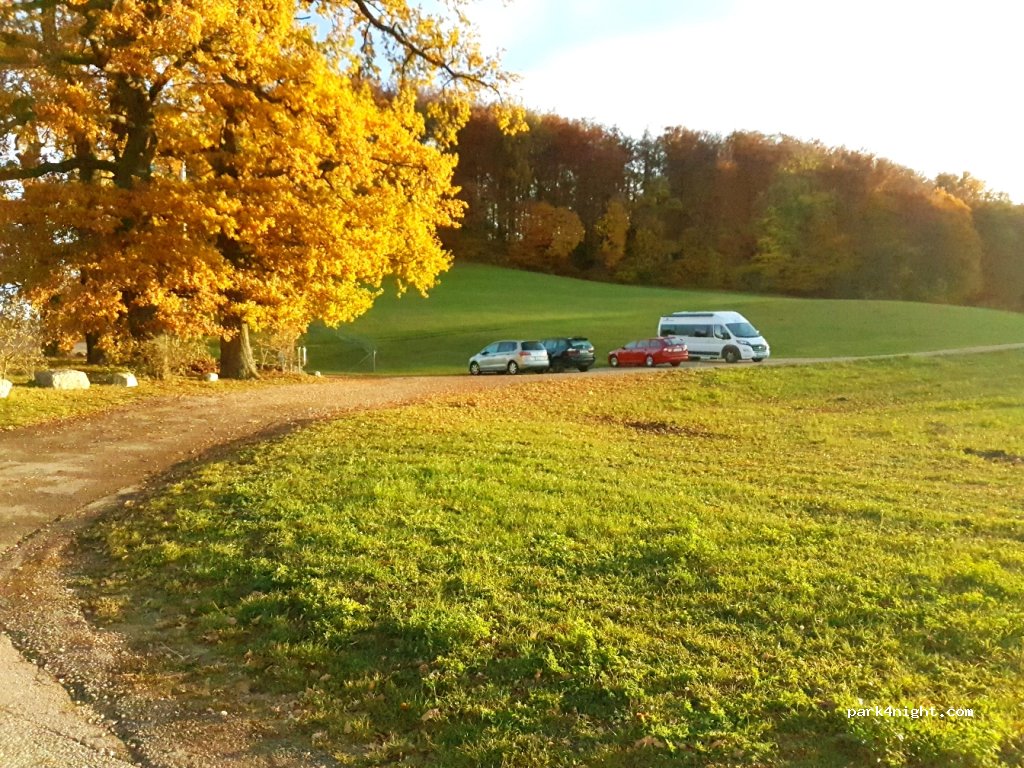 Toller Parkplatz, morgens viele Hündeler die zum Spazieren gehen, leicht Schräger Untergrund