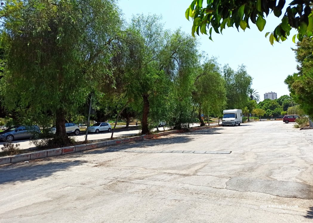We spent a night here parked under the orange trees along the road. Fairly quiet, lovely park next to the road with a nice walk to the mosque (you can't miss it, it's huge!). Handy having a Migros and Burger King across the road too.