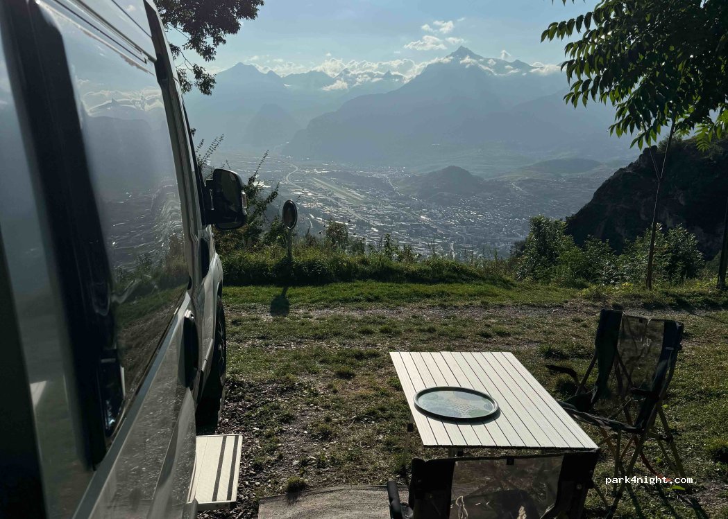 Was ein schöner Platz! Weit weg von Hektik mit super Aussicht auf Sion und das Rhonetal. Wir waren mit Kinderwagen dort, es ist alles sehr steil aber es geht. Unter der Woche hat das Restaurant geschlossen, und es gibt keine Einkaufsmöglichkeiten (Dorf ca. 3Km entfernt). Holz für Feuerschale kann gekauft werden, für CHF 25.-. 2 Erw. + 2 Kleinkinder im Van CHF 70.-, eher teuer! Trotzdem: Empfehlung