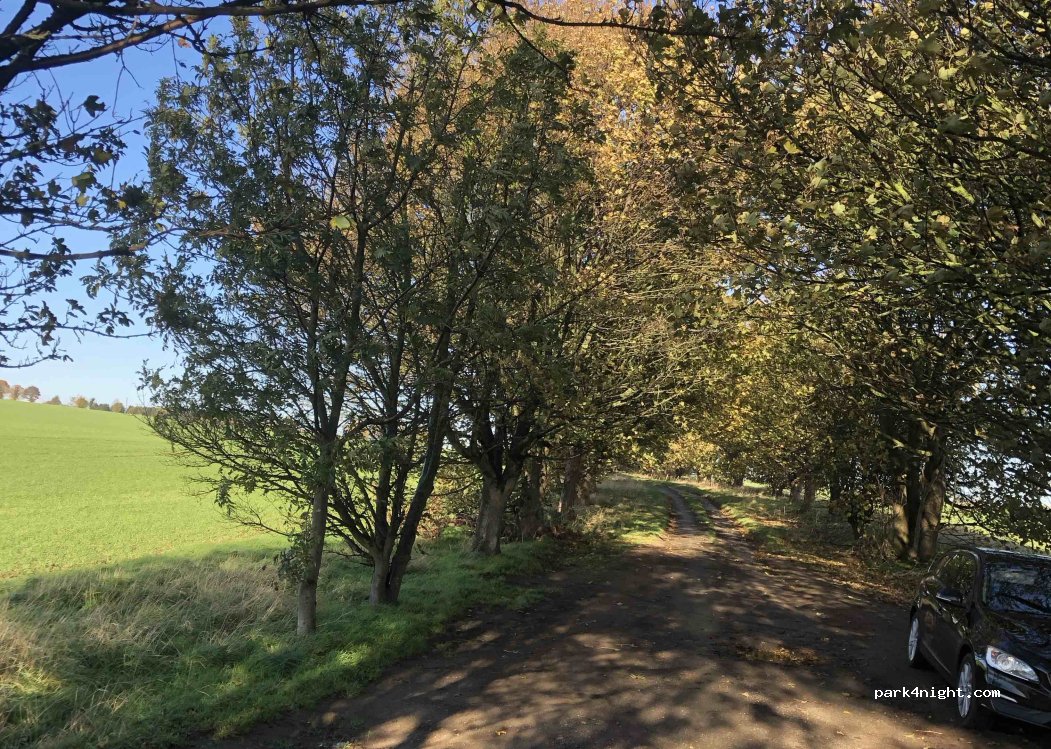 Quiet lane. parking about 100 metre back from main road. Might be best to look first and then reverse in because the low trees may make turning difficult. Ground is flat and the lane is perfect for dogs. No litter bins. Please take your rubbish away with you.