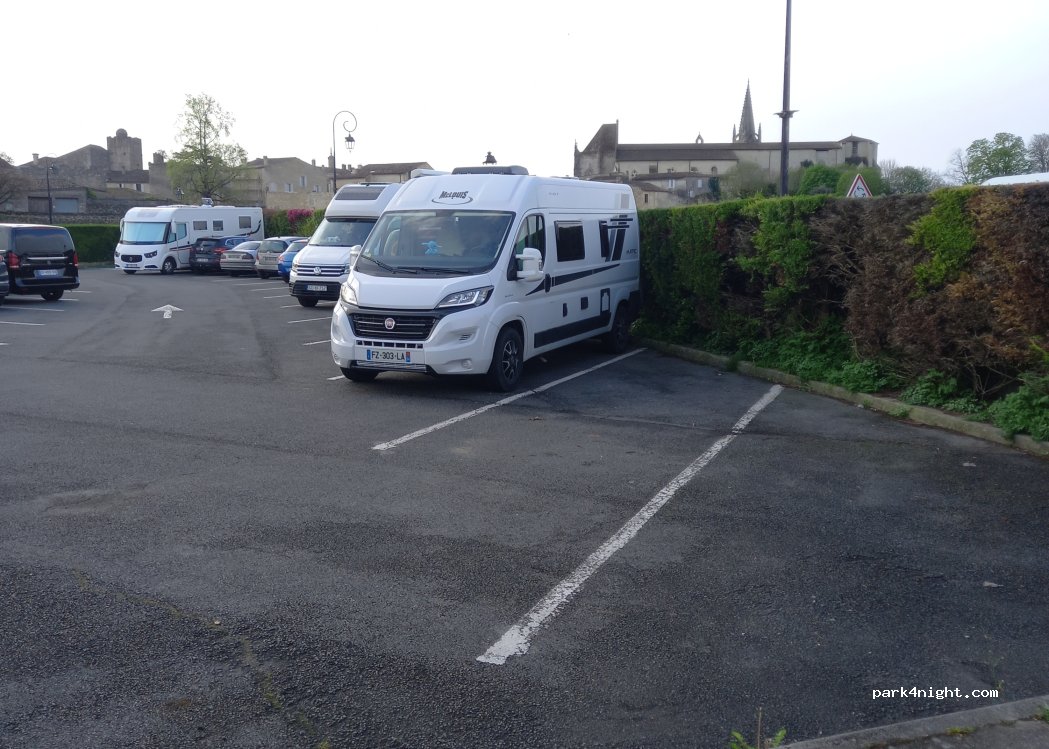 Parking camping-car ? En théorie oui, mais en pratique. En effet très pratique pour visiter cette ville superbe. Mais les voitures prennent les places qui par ailleurs ne sont pas d'une longueur adaptée aux camping-cars. Juste 4/5 places réellement utilisables si votre véhicule fait plus de 5 mètres. On déborde sur la voie de circulation du parking. Dommage pour une ville aussi touristique. Par contre en effet, l'aire de Lussac est très bien et très calme pour passer la nuit.