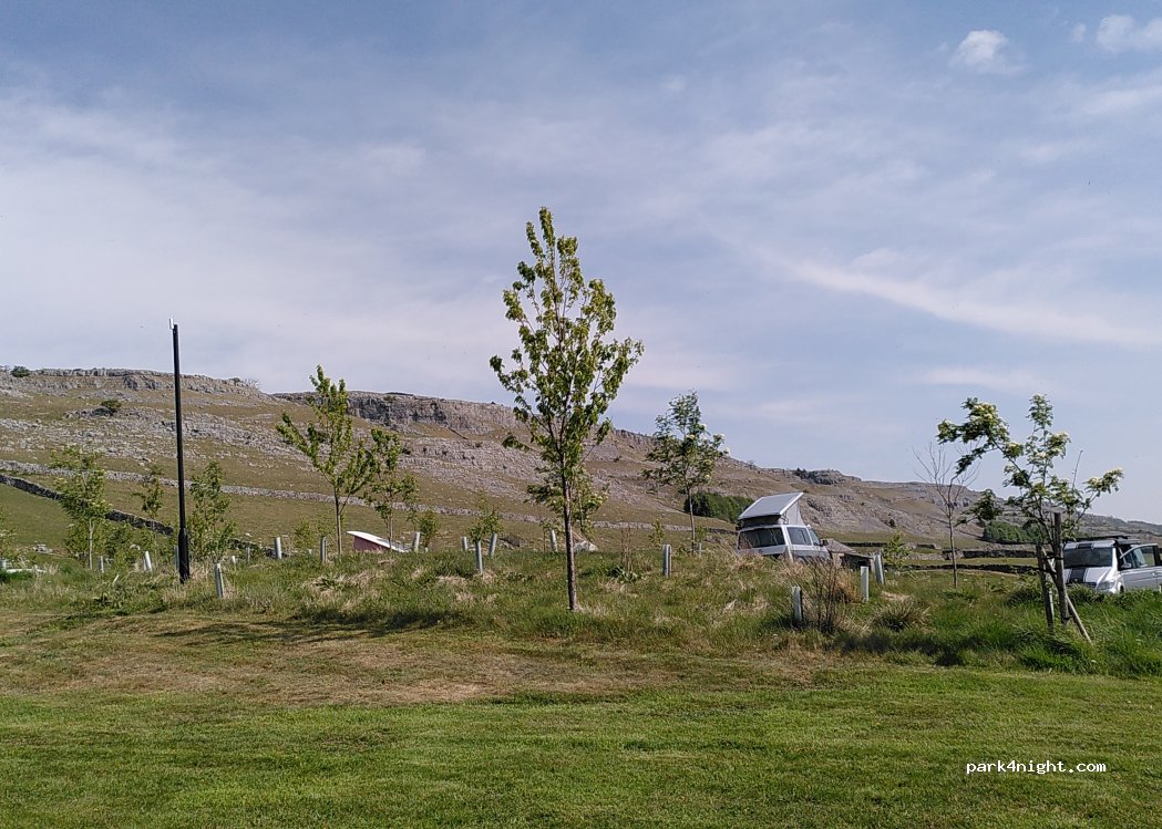 Great facilities and good 4G 2 people 1 camper van with electric ( which you must take) £33 a night midweek and if you want to stay over the weekend it’s minimum 2 nights in peak season ..walking distance over stepping stones to white scar caves