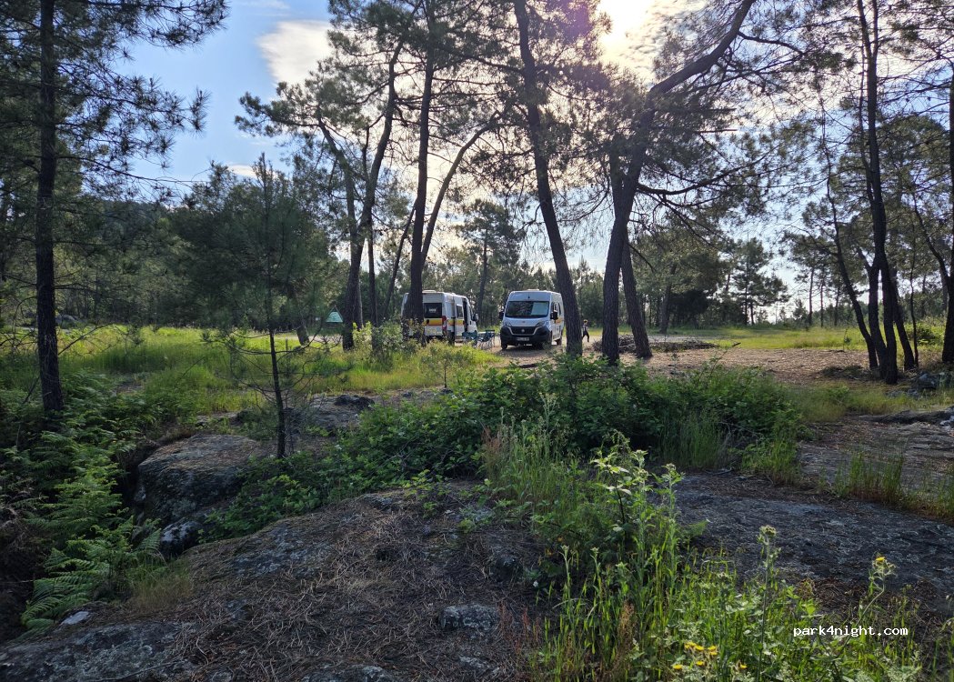Endroit calme isolé et plat avec beaucoup de places (au moins une dizaine d’emplacement, mais nous étions seuls en septembre)en bordure de forêt de pain avec départ de rando, route d’accès bitumée jusqu’en haut, chemin de 20 mètres avec grosses pierres pour arriver sur le spot mais facilement évitées avec notre van. Pas de service. Nous n’avons pas eu de vent dans la nuit, magnifique ciel étoilé lorsque degagé. Quelques insectes mais sans plus. Nous recommandons ++