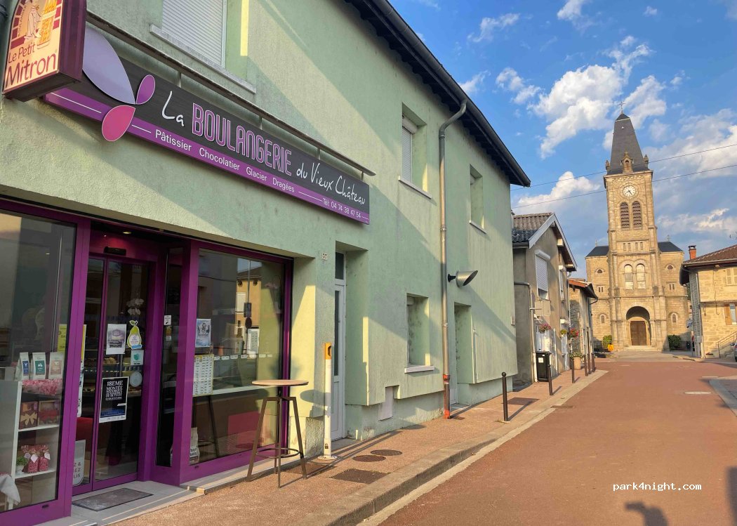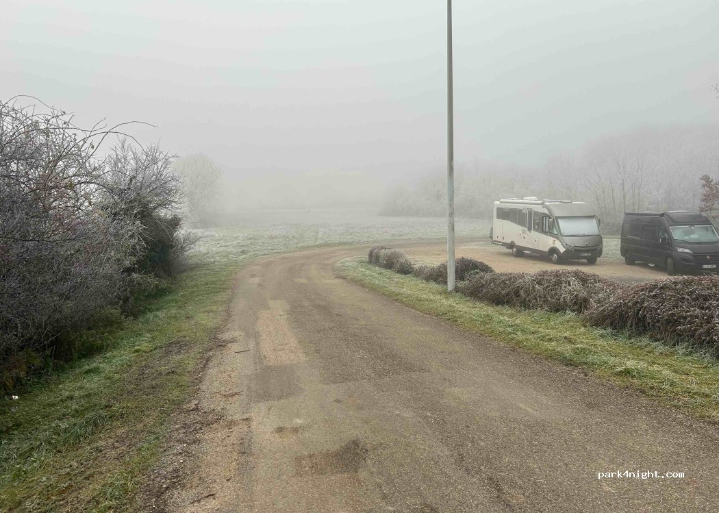 Perfect spot for the night - 4 mins from the motorway when we needed a break with 2 sleeping kids. Amazing bakery and motorway not that loud at all. Lovely village to wake up to and the parking is fine for any size camper. Thanks Park4Night!