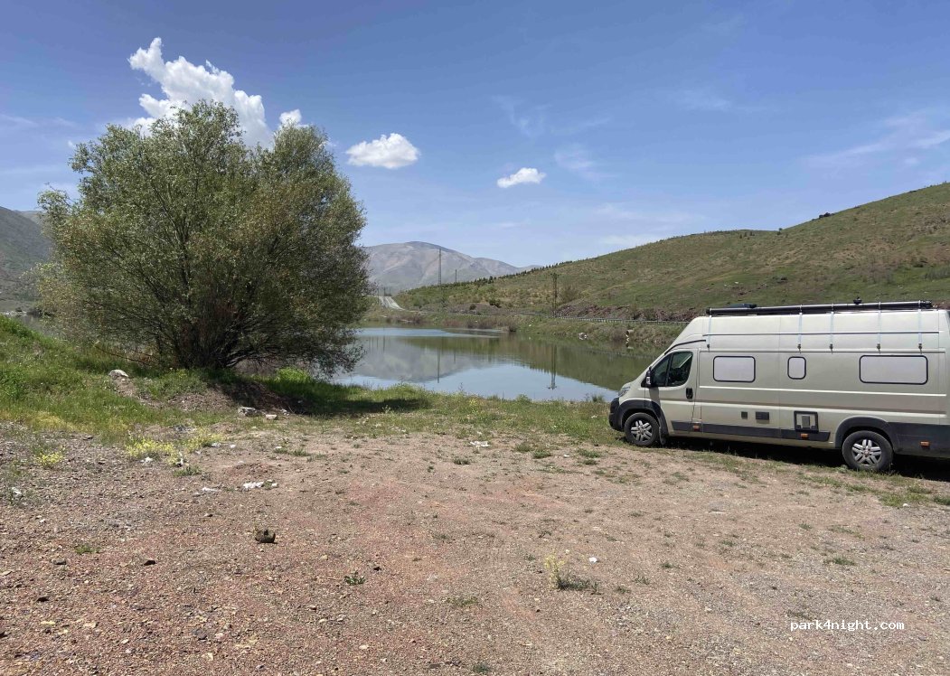 Sur un petit chemin sans issue au bord d’un lac. Proche de la route mais peu de passage la nuit. Ce n’est pas un spot pour rester plusieurs jours mais très bien pour dépanner une nuit sur la route de Nemrut Dagi.