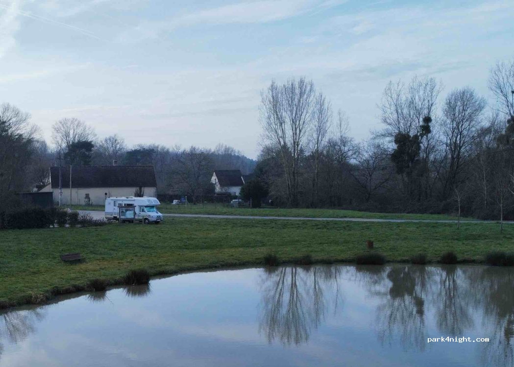 Au bord de l’étang communal, aire de service à jeton hélas hors service pour l’eau propre. Nous y avons passer une nuits au calme la route qui longe est très peux passante, beaucoup de place pour ce garer un panneau indique les lieux ou ce garer. Merci à la commune pour ce magnifique plan D’eau ou l’on peux poser nos roues.