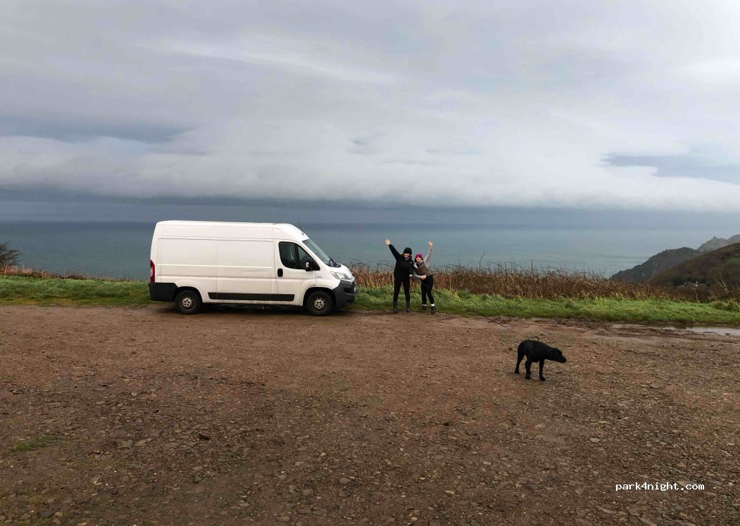 Stopped here today after visiting lynmouth, Lynton and the valley of the rocks. Basic but the view is amazing a bit of a slope but nothing major. Photos aren’t doing it justice, lots of like minded vans here. Honesty box for parking very reasonable suggested donation £3 worth every penny. Will definitely stay here again.