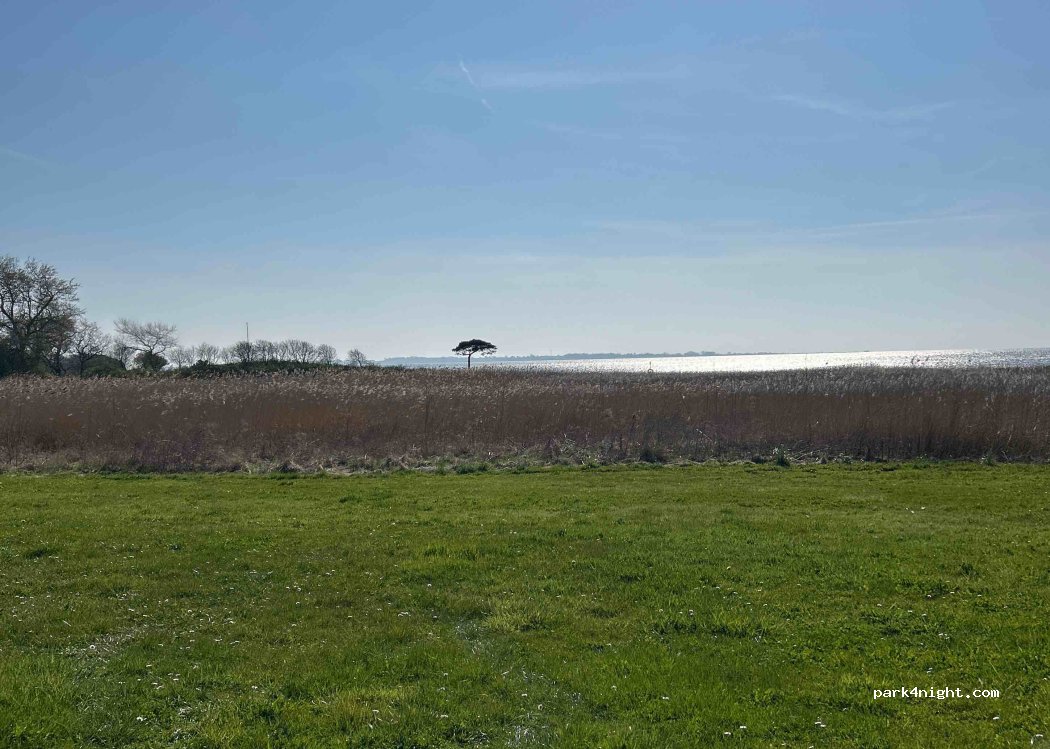 Super schöner Stellplatz auf einer leicht abschüssigen Wiese. Mit Blick aufs Wasser von den oberen Plätzen. Toilette wird täglich gereinigt. Strandzugang am am südlichen Parkplatzende. Schöner kleiner Badeplatz mit Steg. Wunderschöne Sonnenuntergänge.