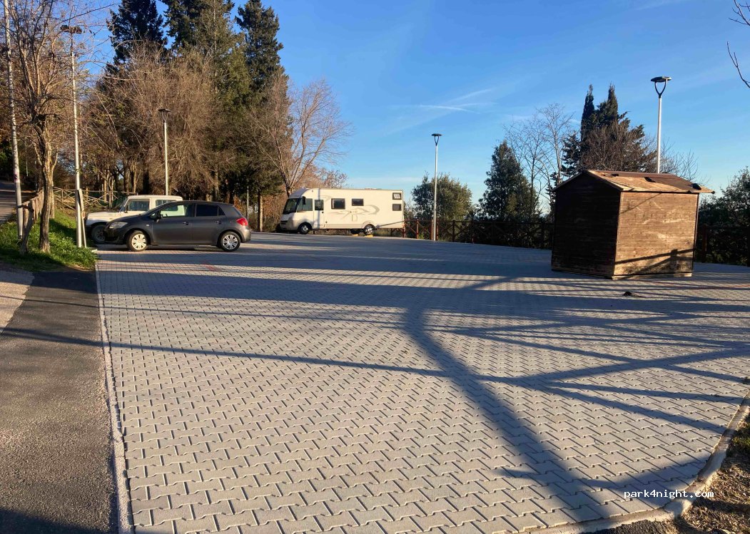 Safe place with nice view, water fountain is working, but there are no toilets. Parking places are sloped, not leveled. It is not an official campers spot, so locals park there. The place was quite busy until around midnight, but then calm. We also recommend visiting villages Casale de Pari and Pari for coffee and walk, very beautiful. The bonus was we spotted a baby doe!