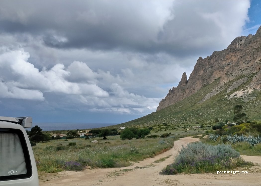 Super endroit on a adoré ! Dérangés seulement par le bruit des animaux de la ferme proche donc quand même plutôt agréable ! Très belle vue mer, les falaises sont magnifiques, le spot est propre et on a pu se caler à plat facilement. Départ de rando sur place pour le très beau monte cofano.