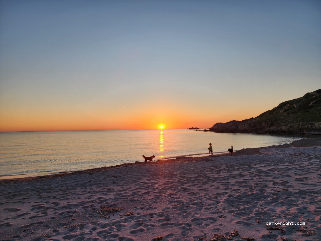 Nuit très calme en pleine nature. Endroit très beau plage immense mais une partie trop envahie pas les algues. Amusements dans les petites dunes.