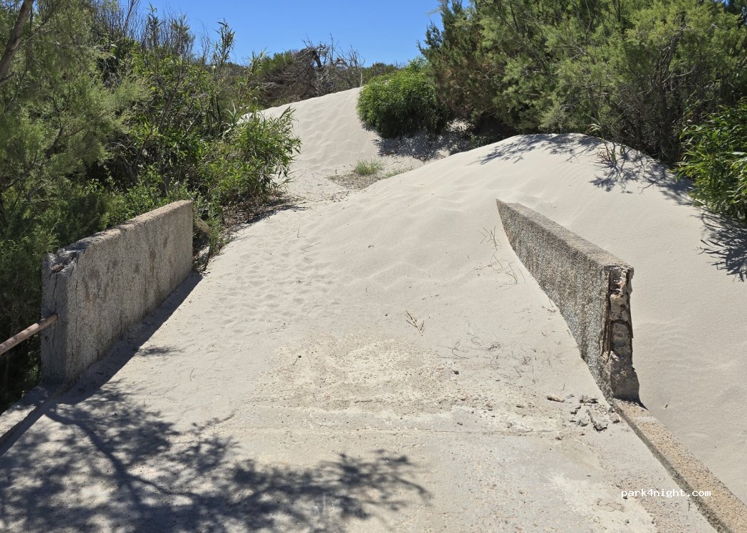 Vorsicht, derzeit Sandverwehungen und Ausspühlungen auf der Zufahrt. Bin mit Allrad Caddy so gerade eben noch durch gekommen.