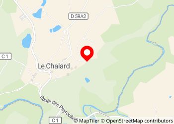 Suivre fléchage salle des fêtes. C'est une route goudronnée en impasse au bout du village. Le parking est immense et goudronné. L'écomusée des mines d'or est intéressant et est à côté de la mairie de Le Chalard. Aucun service sur le parking. Très calme.