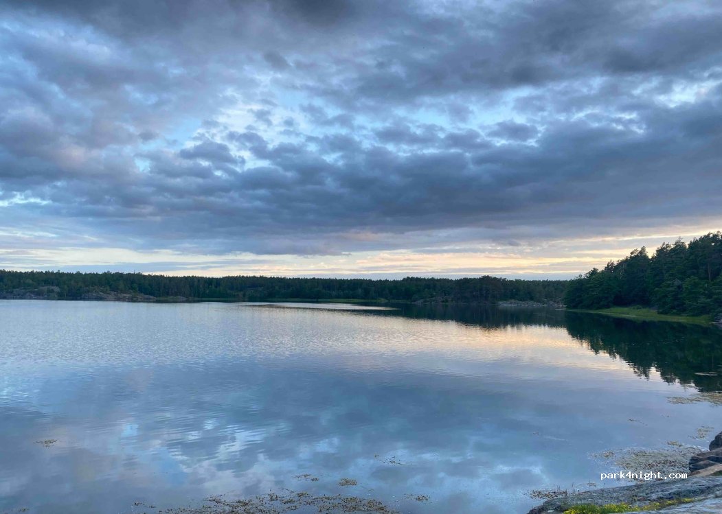 Nice private place, no official bonfire spot but some others have obviously had some there. The view is nice, swimming is hypothetically possible but there is a lot of algae. The road not really used, only 1-2 cars passed in the evening.