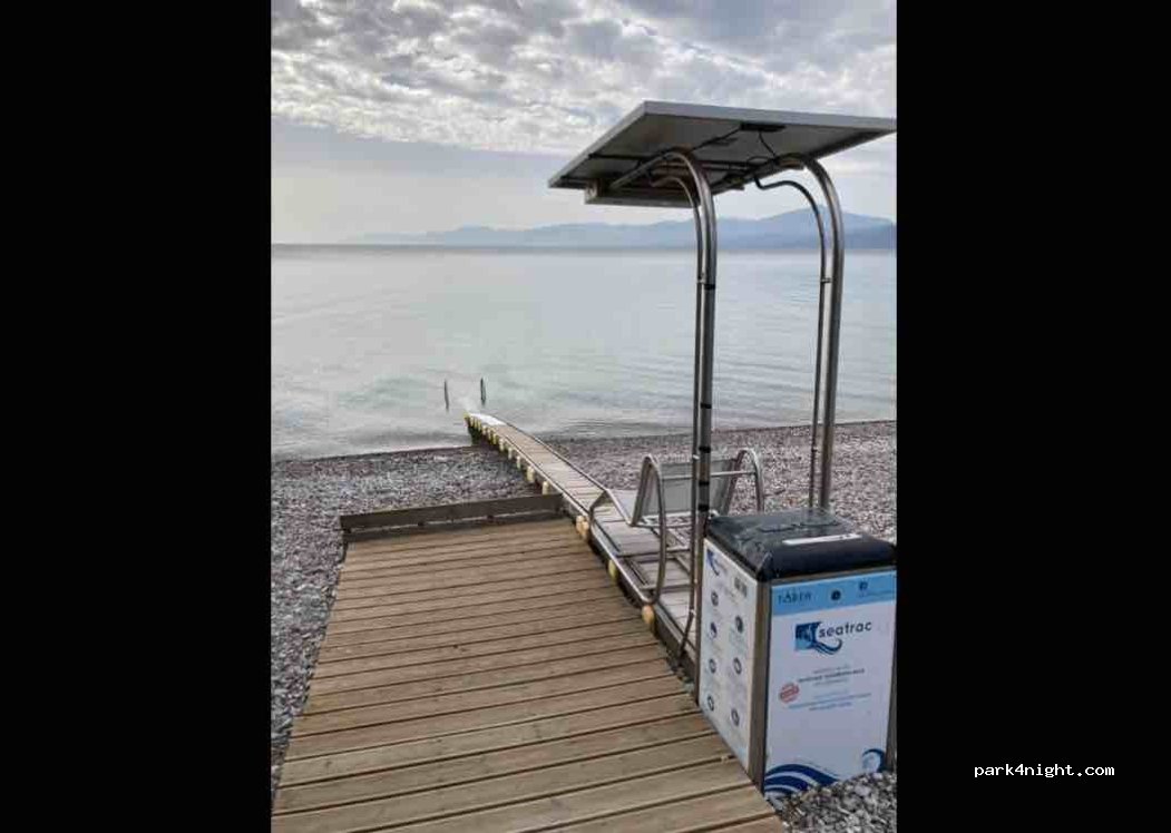 Super parking, voda in tuš in dostop do vode za invalide!!!! Plaža je iz kamenčkov, prav tako so v vodi, zato je voda kristalno čista!