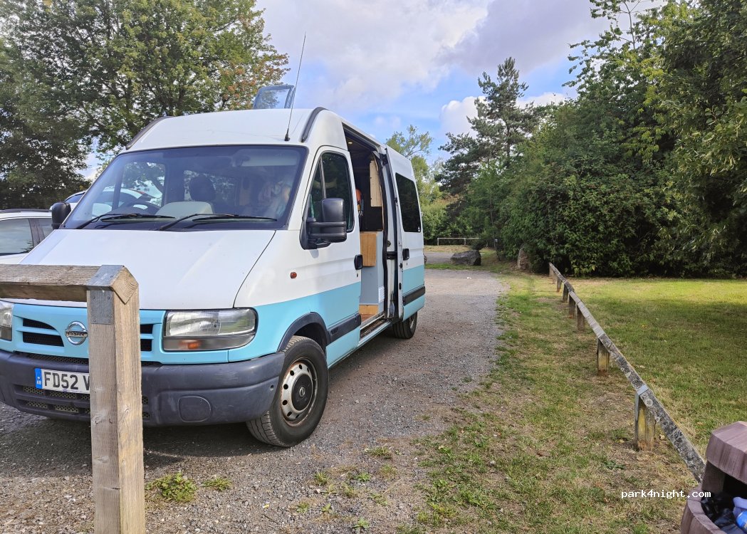 An excellent little park up spot. Small gravel car park by nature reserve. Minimal road noise overnight although a few cars did come in and park up, it didn’t cause us any issues. Very busy first thing Saturday morning with a Park Run type activity and then dog walkers. Space for 20-30 vehicles. No trailers or caravans allowed. Would use again.