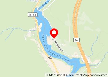 Neben der STAUSEE ARENA (= ein See im Fluss Steyr). Sie können auf der letzten Ebene neben den temporären Containerbüros eines Bauunternehmens oder zwischen dem Restaurant Gasthaus Seeblick und dem Tennisplatz parken. Genießen Sie die schönen Spielplätze am See!