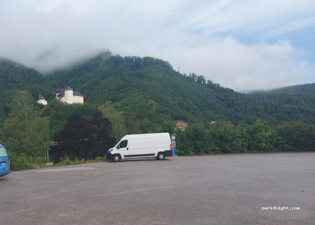 Krásné a klidné místo s pěkným výhledem na zámek Klaus. Cena za obytnou dodávku 8€. Kousek od pláže a půjčovny lodiček na přehradě. V sezóně a za hezkého počasí otevřená i hospůdka. Cca 3km od dálnice.