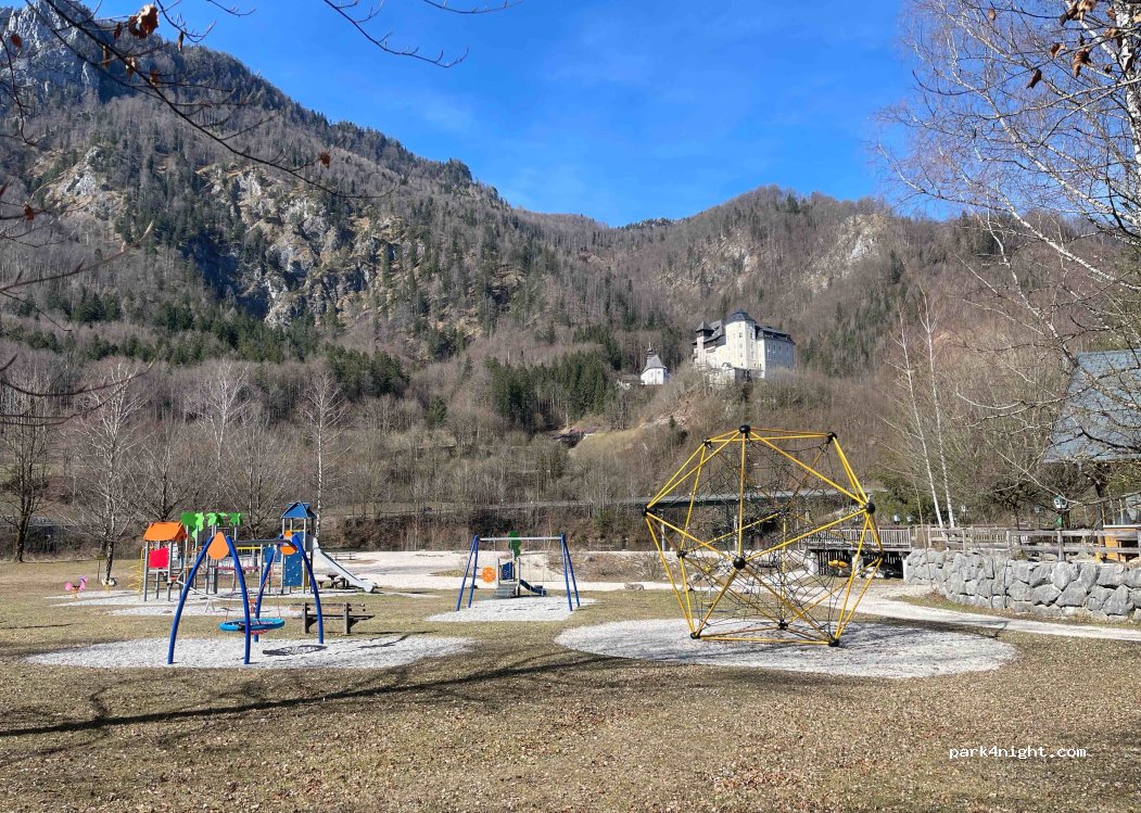 Next to STAUSEE ARENA (=a lake in the river Steyr). You can park at the top level, next to the temporary container offices of a building company, or between the restaurant Gasthaus Seeblick and the tennis court. Enjoy the nice playing grounds next to the lake!