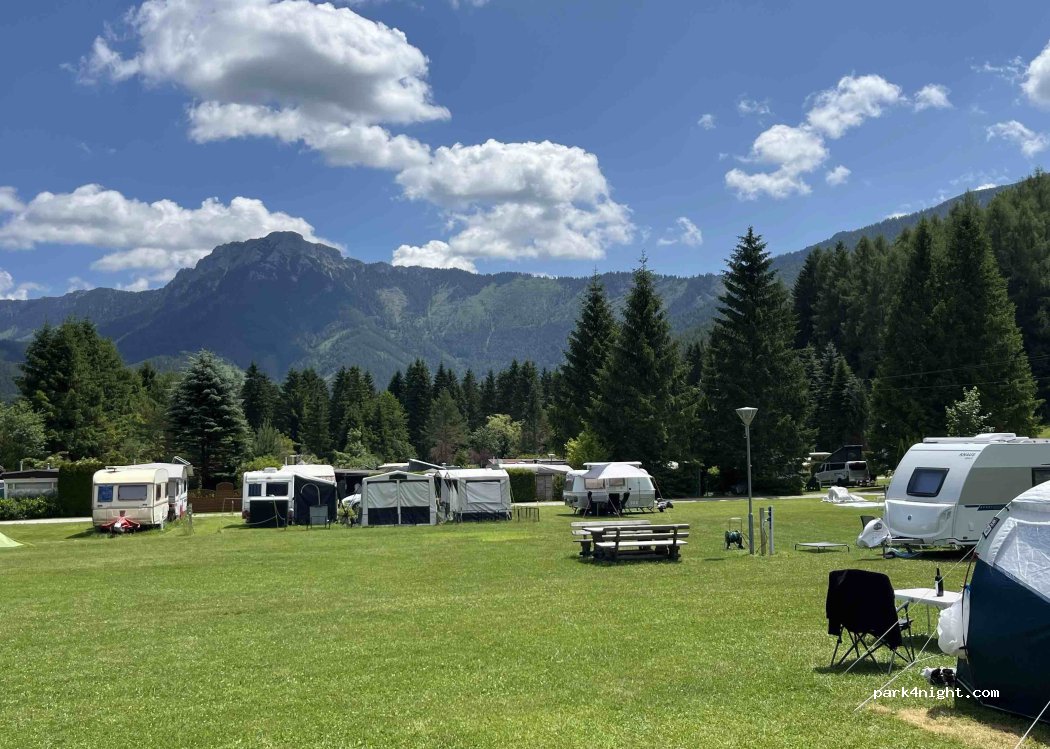 Stayed for 1 night without reservation. Rather big area, lots of people but surprisingly quite (i mean it as i am light sleeper). Nice lady in the office. Paid 33eur for 2 adults, 2 children and strom, more less ok. Showers cost 0,5eur for 4min which is more than enough. Buildings and equipment a bit old but really not bad. And you get a nice view to the mountains.